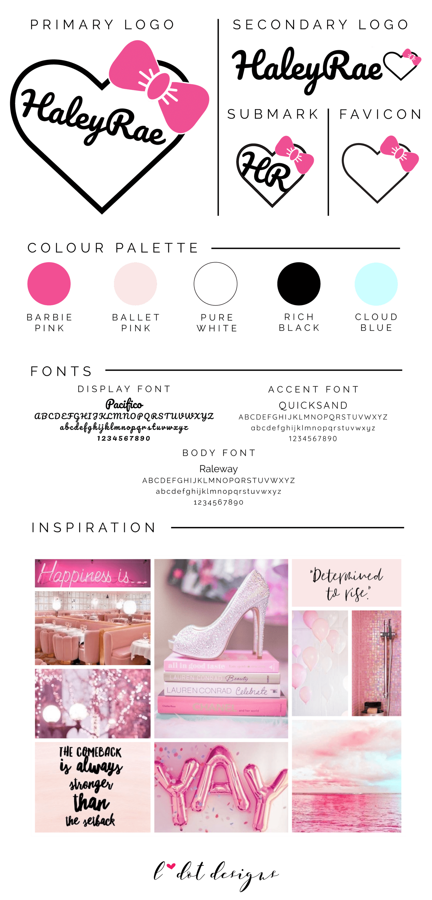 Pink, Sparkly, Feminine, Fun, Disney, Passionate, Girly, Authentic are some words I would use to describe what we wanted to create for HaleyRae’s brand.